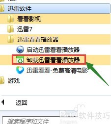 11、 打开迅雷软件文件夹,进入迅雷看看播放器,选择并点击卸载迅雷看看播放器进行操作。