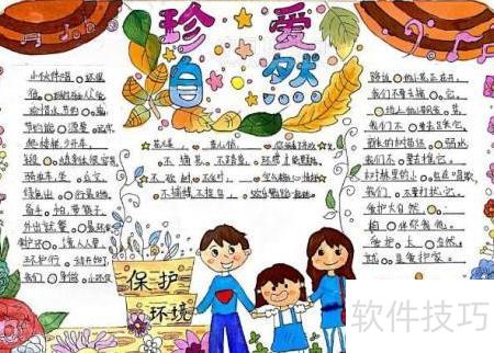 3、 珍爱自然,守护地球,手抄报模板分享,为你提供创意参考。