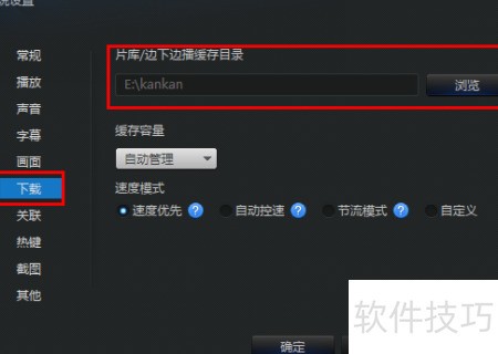 4、 在迅雷看看的系统设置中选择下载选项,即可查看其缓存目录位置。