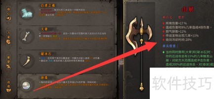 2、 推荐使用山崩武器,词条优先选择增伤与收剑减冷却,所需圣物为大骨和破冰石,合理搭配可大幅提升输出效率与战斗流畅度。