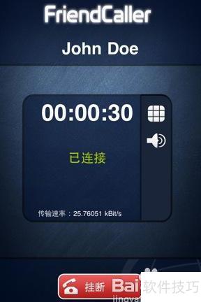 6、 拨通后,手机将显示无号码来电,正常接听即可。对方的声音通过iTouch扬声器播放,你只需对着iTouch摄像头附近的小孔讲话就能实现通话。