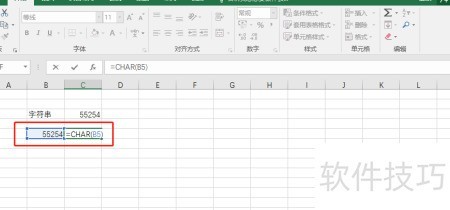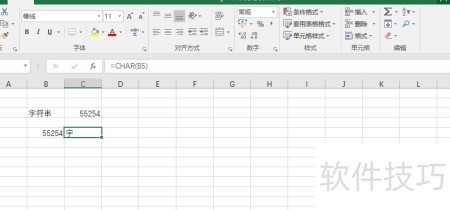 2、 将数字代码转换为字符可使用CHAR函数,在单元格输入=CHAR(B5)即可实现。