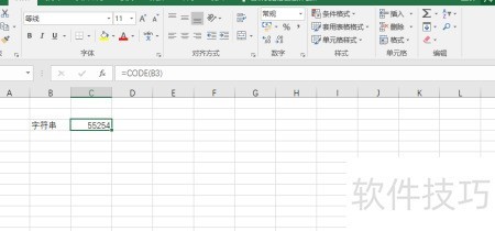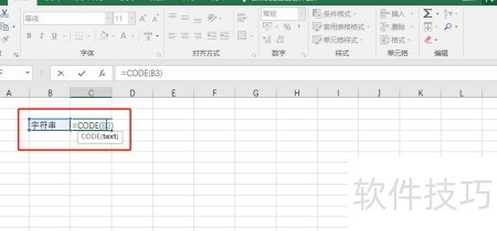 1、 所示,将B3单元格中的字转换为数字代码,可在单元格内输入公式=CODE(B3)。
