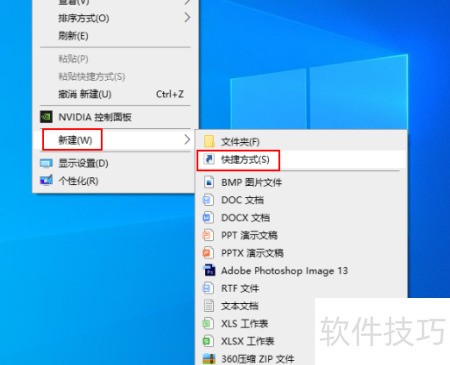 2、 将鼠标移至新建,从下拉菜单中选取快捷方式选项。