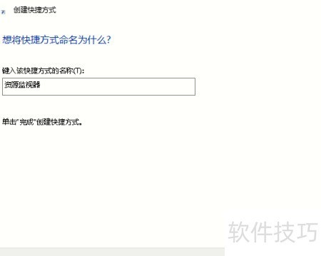 4、 将快捷方式命名为资源监视器,然后点击完成按钮。