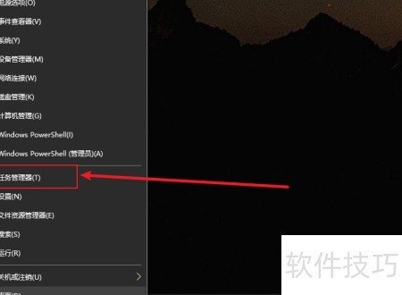 2、 右键开始菜单图标,选择任务管理器。