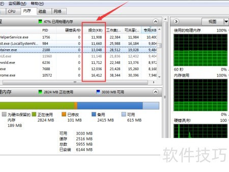 5、 点击内存标签,箭头指向处即为提交的数值。