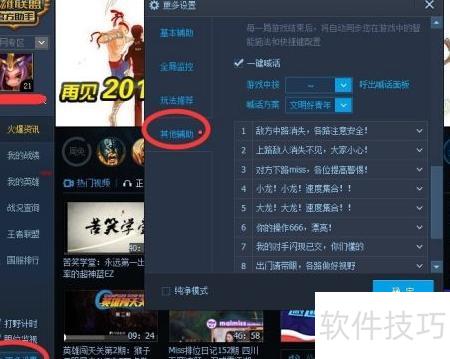 2、 在更多设置里选择其他辅助功能,可找到一键喊话选项,游戏中按~键即可打开喊话面板。