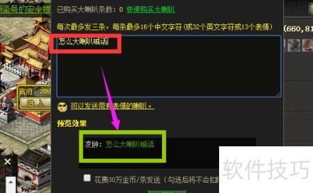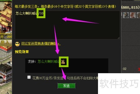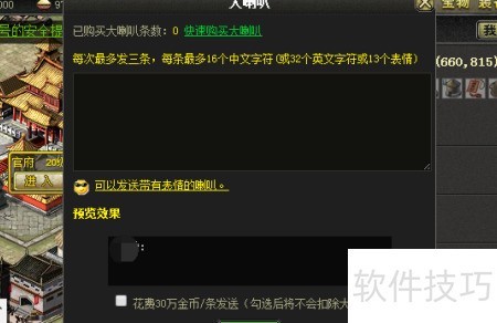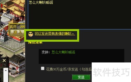 在烽火战国中,除了使用小喇叭,玩家还能通过大喇叭进行喊话。大喇叭消息更醒目,无需进入城内即可被在线玩家看到。具体操作方法如下:打开聊天界面,选择大喇叭功能并输入内容发送即可。
