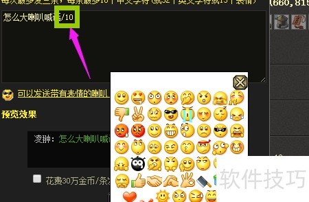 6、 点击竖起两根手指的表情,上方会显示/10,所示。