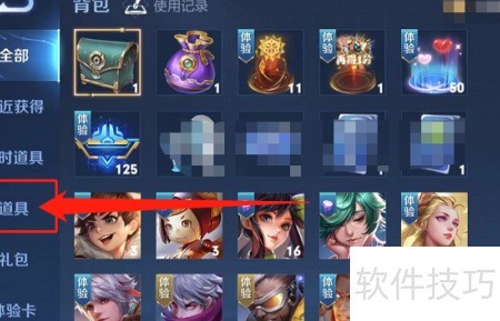2、 进入背包页面,点击道具选项。