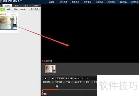 5、 页面左侧为已录制的游戏视频,点击并拖动至中央大屏幕即可播放。