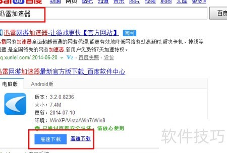 1、 在百度搜索迅雷加速器可找到免费程序,下载后即可运行使用。