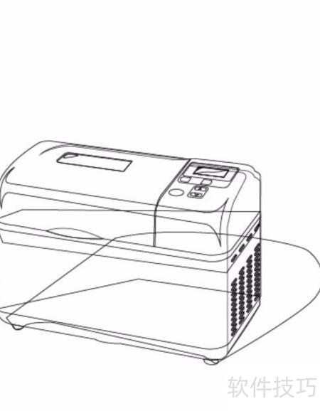 1、 以钢笔工具勾勒矩形,绘制UPS不间断电源的顶部、正面与侧面结构轮廓,并通过路径清晰划分各区域,明确标注不同功能部分的布局与位置关系。