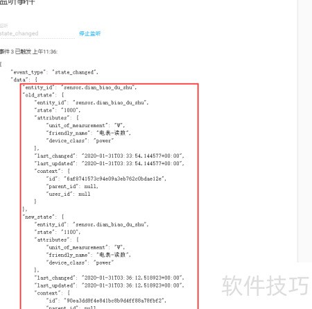 4、 当 state_changed 事件触发后,便可查看其数据结构,其中包含 old_state 和 new_state 两个对象,分别表示状态变更前后的信息。