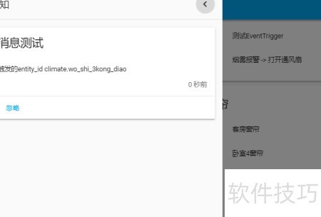 6、 当指定实体ID的状态发生变化时,所示规则会在Home Assistant中触发并显示一条通知,实现及时提醒与交互反馈。