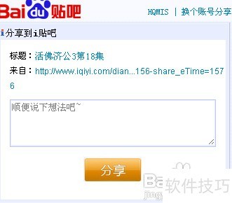 2、 点击浮动框内的分享按钮,即可弹出视频分享界面。