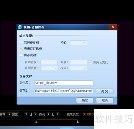 12、 点击保存后,在弹出的视频/音频保存窗口中,设置输出类型、文件名及保存路径,确认无误后点击确定即可完成保存。
