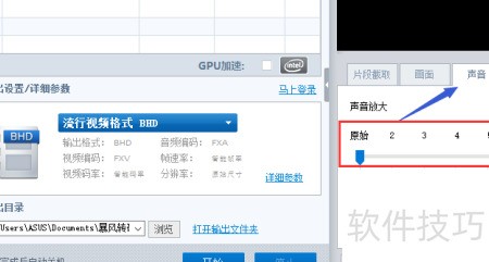 7、 可调节音量放大至五倍,点击下方播放键即可试听效果。