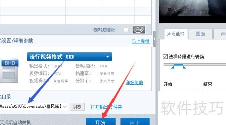 8、 设置完成后,点击左侧输出目录,选择保存片段的位置,确认并点击开始按钮即可。