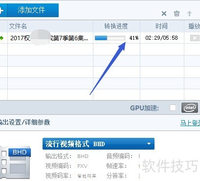 9、 转换时会显示进度条,右侧同步预览所截取的视频片段,处理速度较快。稍等片刻,截取完成后播放视频,可见其内容与设定的时段完全一致,时长也符合预期。