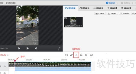 3、 将红色游标移至所需位置,点击分割按钮即可截取视频,支持多次操作,按需自由分割。
