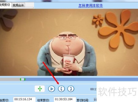 6、 设定好起始时间后,将进度条拖至视频片段末尾并固定,该位置即为裁剪后的结束时间点。