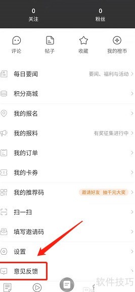 4、 进入页面后选择意见反馈选项。