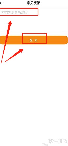 6、 进入反馈页面,填写意见后点击提交即可。