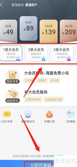 6、 进入会员页面,挑选合适套餐后点击立即开通即可。