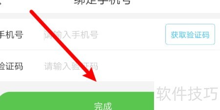 10、 输入手机号,获取验证码后点击完成,即可成功绑定。