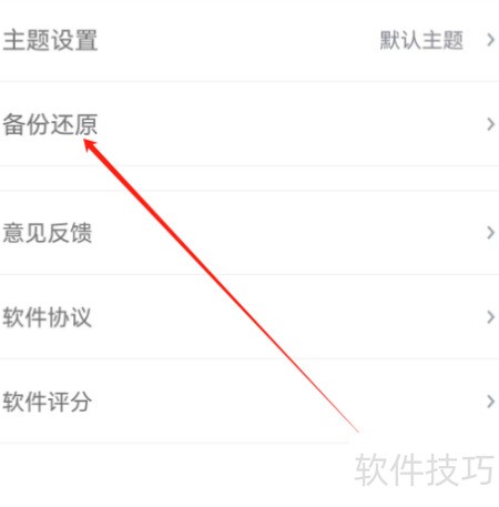4、 进入安卓掌中记的关于页面,选择备份与还原功能。