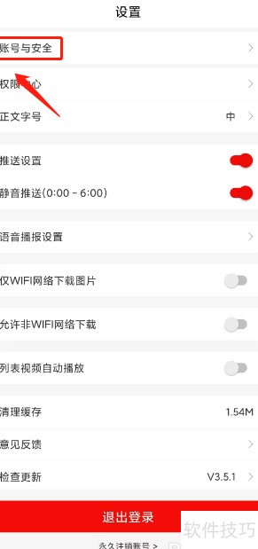 2、 进入设置,选择账号与安全选项。