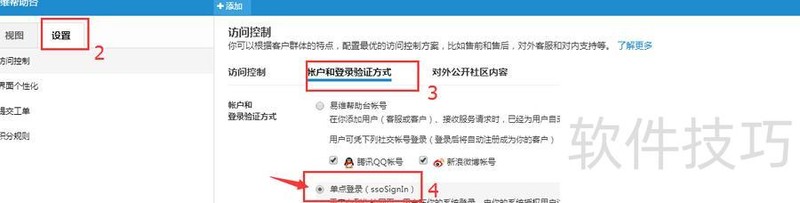 6、 登录易维帮助台后台,依次选择帮助中心、设置、账户和登录验证方式,然后启用单点登录选项。