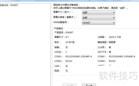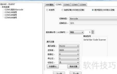 5、 打开FStudio软件,创建新工程并填写工程名称与保存路径,确认后选择对应触摸屏型号。进入通信设置界面,选定com0端口,将HMI设为从站,设备类型选为条码枪。通信参数需与扫码枪的配置完全一致,确保双方协议、波特率等匹配,以保障稳定通信和数据准确传输。
