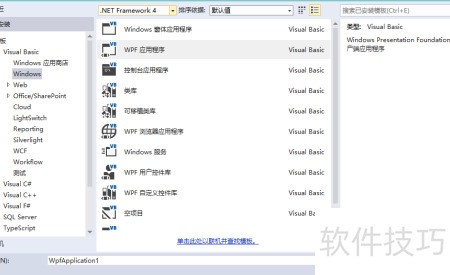 1、 启动VS,创建WPF应用程序项目,支持VB.NET、C,从VS12开始还支持C++。