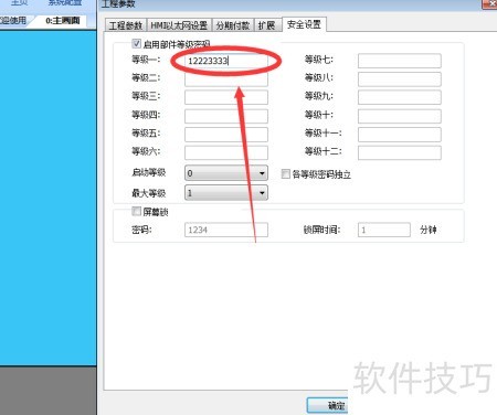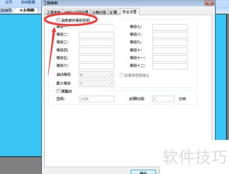 4、 在安全设置里,勾选启用部分等级密码选项。