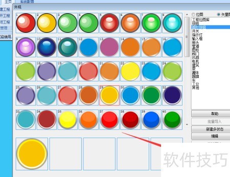 5、 在外观窗口的矢量图菜单里选取圆形按钮选项。