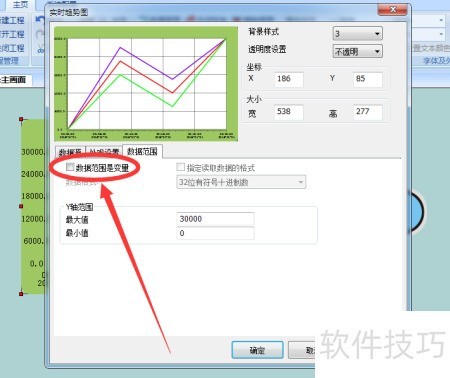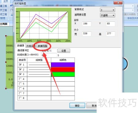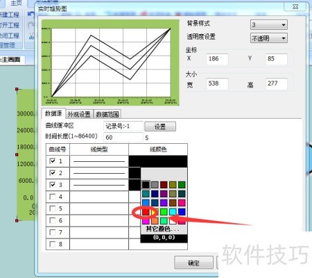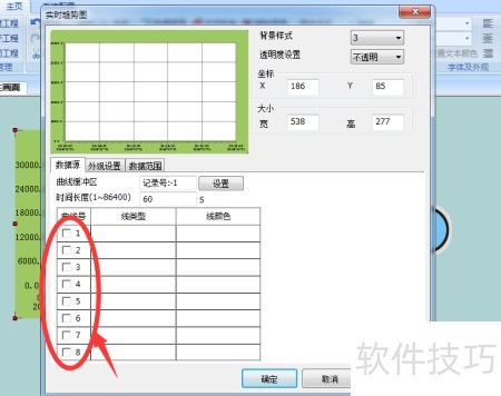 4、 在实时趋势图设置窗口中选中曲线号选项。