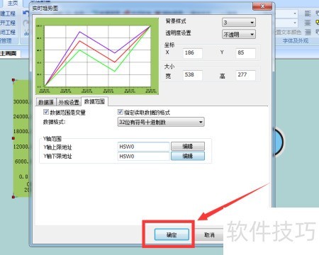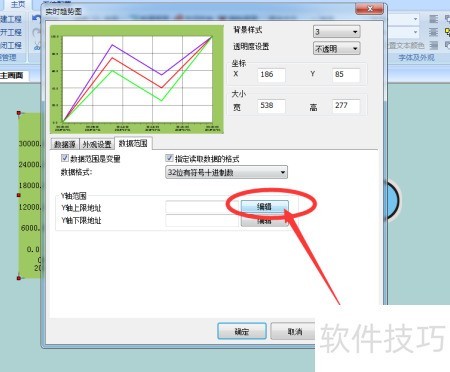 8、 设定数据范围中Y轴的最大值与最小值地址。