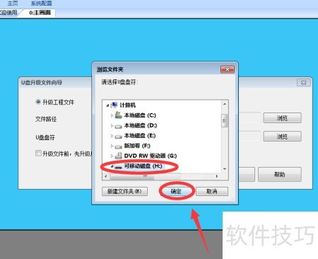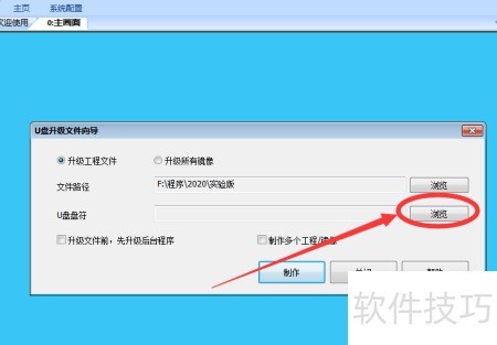 3、 在U盘升级向导中,点击盘符右侧的浏览按钮进行选择。