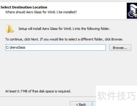4、 默认安装路径为C:AeroGlass,建议保持不变,无需修改,使用默认设置即可。