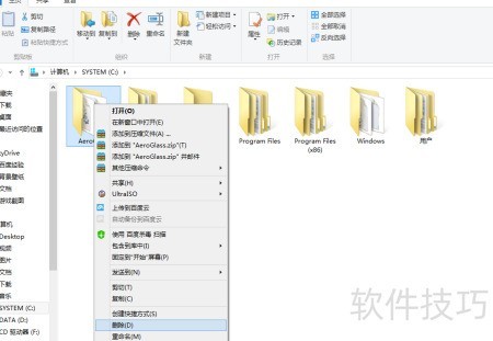 8、 卸载后需手动删除C盘中的AeroGlass文件夹。