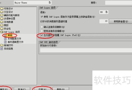 2、 进入SAP登录设置的常规选项,勾选在托盘栏中隐藏SAP登录功能。
