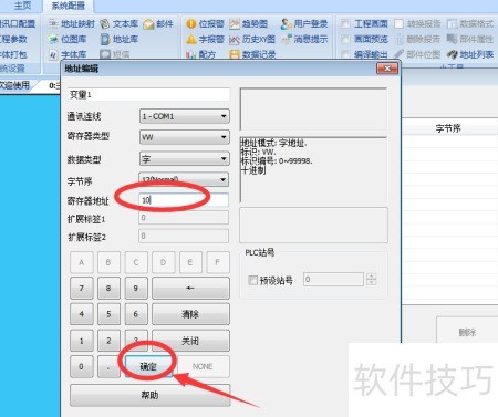 6、 输入所需保存的地址至寄存器,点击确定即可完成变量地址的创建。