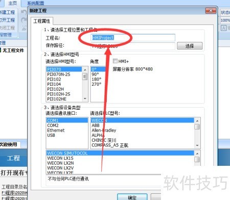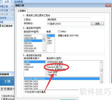 介绍如何在维控触摸屏编程软件中创建一个能与SMART200 PLC通信的新工程,详细步骤如下。