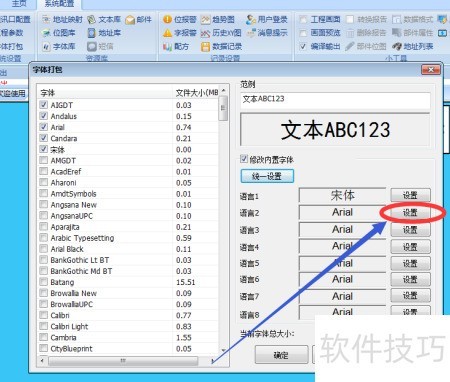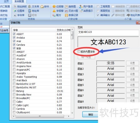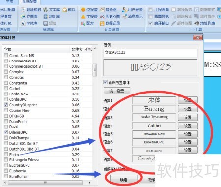 6、 依次设定语言3至语言8的字体样式,确认后即可完成字体打包。