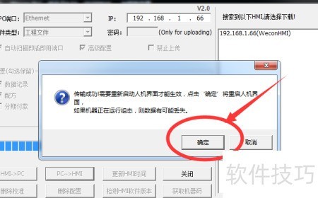 7、 在提示窗口中点击,即可完成组态画面的下载。