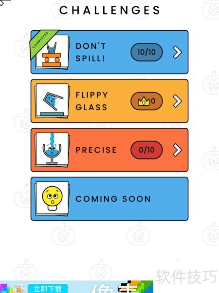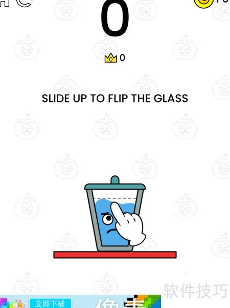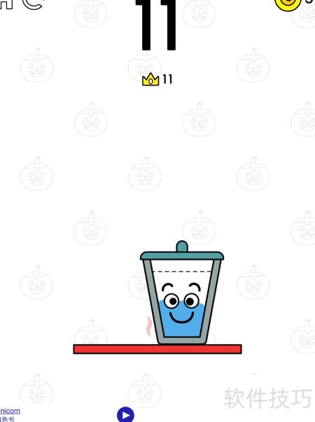 2、 滑动手指控制水杯倾斜角度,角度过大则水会溢出导致失败。水杯不可移出红色平台,否则同样失败。每次成功翻转均可获得金币奖励。