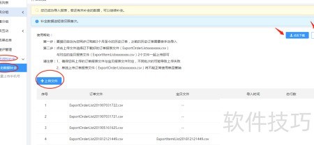 8、 选择选择文件,导入已下载的订单报表,点击开始补全按钮,等待系统自动分析并完成数据填充即可。如对历史资料补全有疑问,可参考操作演示视频了解详细流程。